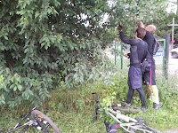 Owo zwierzę, wystraszone i dziwne takie jakieś udawało nieboszczyka, tzn. polnego mysiego truposza (nawet po wypuszczeniu) i gilgotane kilkakrotnie przeze mnie się nie ruszało, choć oczywiście żyło. Ruszyliśmy dalej by za chwilę się znowu zrobić sobie przerwę - tym razem w okolicach Połczyna. Otóż w tym miejscu na Ziemi niemiłosiernie gębę wykrzywiają smakowite wisienki, których postanowiliśmy zakosztować, łypiąc co chwilę okiem, na dom gospodarza...