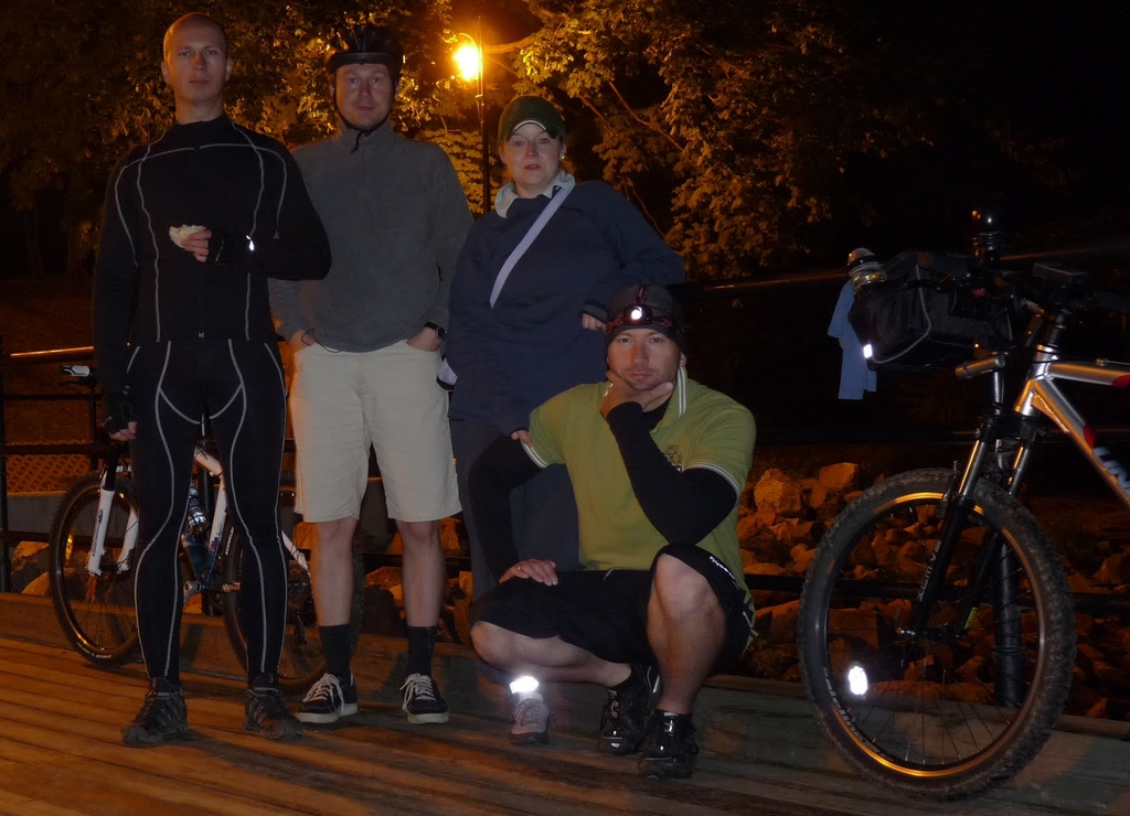 Dalej właściwie nie ma co opisywać, bo poza mokrymi gaciami (jazda bez błotnika) i wszechobecnym błotem na rowerach i na nas, nic się nie działo. Na Witominie byliśmy o godz. 21.05 :-)