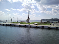 przeciwpiechotne i przeciwpancerne a także kilka ciężkich schronów bojowych, ten na plaży otwarty, w środku jednak mnóstwo butelek i puszek po alkoholu.. Godz. 6:20 - szukamy kasy z biletami na tramwaj wodny. Kasy jednak otwierają za 2h. Udajemy się więc w poszukliwaniu miejsca gdzie można wypić kawę czy herbatę. Nawet miejscowi mieli problem by nam wskazać coś otwartego o tej porze. W końcu udaje nam się dostać kawę w hotelu "Pod Orłem".