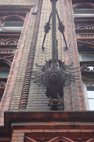 Następnie ruszyliśmy na teren Politechniki Gdańskiej: to prawdziwe skupisko masońskiej symboliki, począwszy od cyrkli na budynku głównego gmachu, po wmurowane kompasy, kielnie i pszczoły. Potem była ulica Własna Strzecha 15a, obecnie budynek PG a dawniej siedziba loży „Zum siegenden Licht” w latach 1921-1933 i na rogu Al. Zwycięstwa i Tuwima dom z narożnym zdobieniem i masońskim cyrklem pośrodku. Na Ogarnej 27 odwiedziliśmy dawną siedzibę loży „Gedania Loge nr 3 der Prowinz Westpreussen”(1899-1916) i niedaleko od tego miejsca siedzibę loży "Zur Kette an der Weichsel" przy ulicy Chlebnickiej 16 (obecnie Dom Studencki ASP). Z kolei w okolicach ulicy Nowe Ogrody mieściła się niegdyś siedziba loży "Eugenia" (w 2008 natrafiono na jej fragmenty podczas prowadzenia prac budowlanych). Prawdziwą perełkę zostawiliśmy sobie jednak na koniec: dość pokaźne malowidła w bramie kamienicy na ul. Ułańskiej 11, a na nich cedr libański (wg masonów symbol wieczności), słońce, cyrkiel i zapewne inne niedostrzeżone okiem profana symbole.